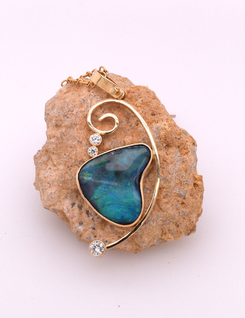It doesn't get much prettier than this boulder opal and diamond pendant, handmade with love by our artists!