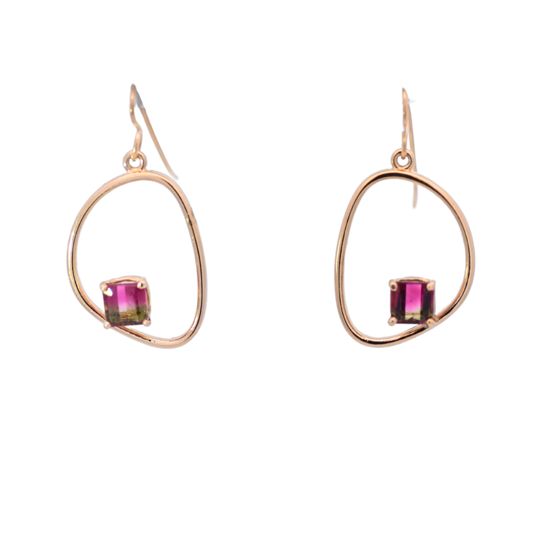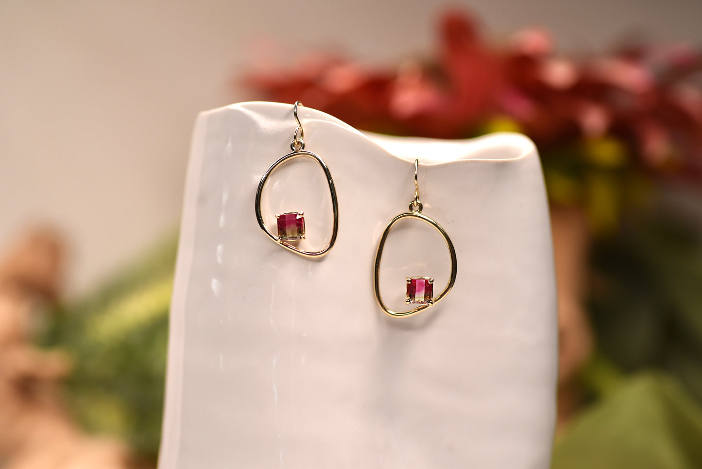 Nature’s beauty shines through in these one-of-a-kind earrings. Featuring vibrant watermelon tourmaline set in 14kt gold, they’re handmade in our Downtown Waco studio.